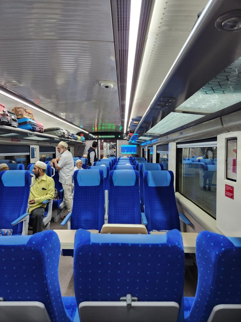 These trains have well laid out comfortable seats and a slightly better array of food served.