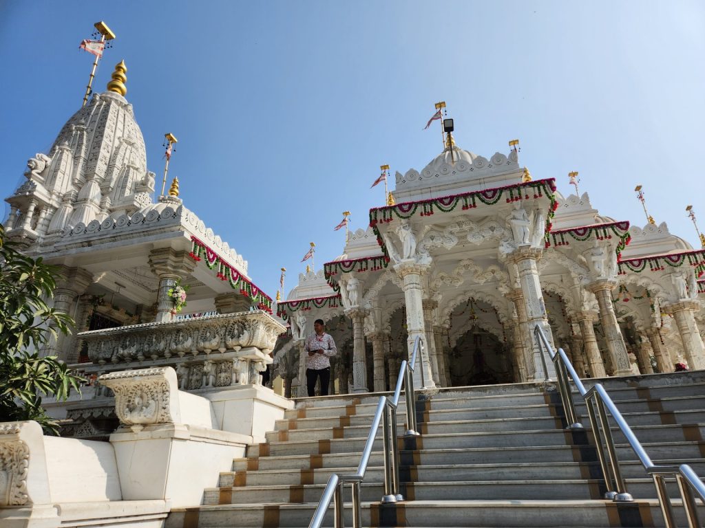 The other images which can be seen here are that of Dharma Dev, Bhakti Mata and Harikrishna. The pristine white exteriors of the temple, built in white marble are indeed eye catching.