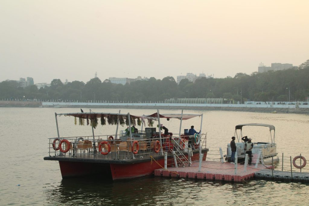 There are ghats for boating and speed boats and motor boats also ply in the river.