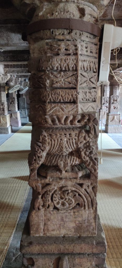The temple complex is surrounded by 12 eloquently adorned stone pillars.