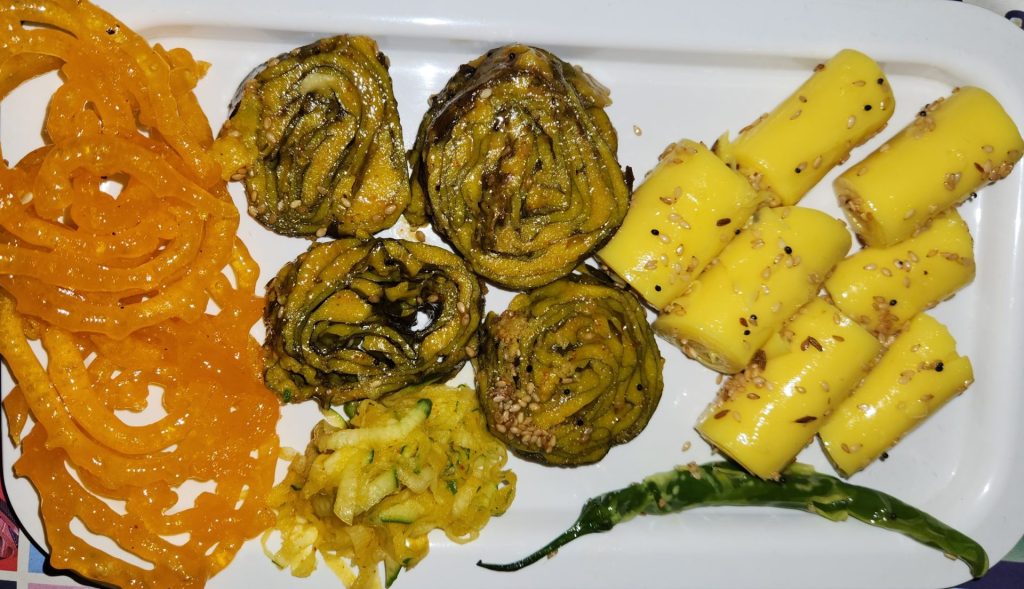 26th January : The next day was what was earmarked for a little bit of sightseeing around. We wanted to try out a traditional Gujarati style breakfast replete with Nylon Khandvis, Jalebis and Patris and did a quick order from our Hotel through Swiggy from Jalaram Khamam House.