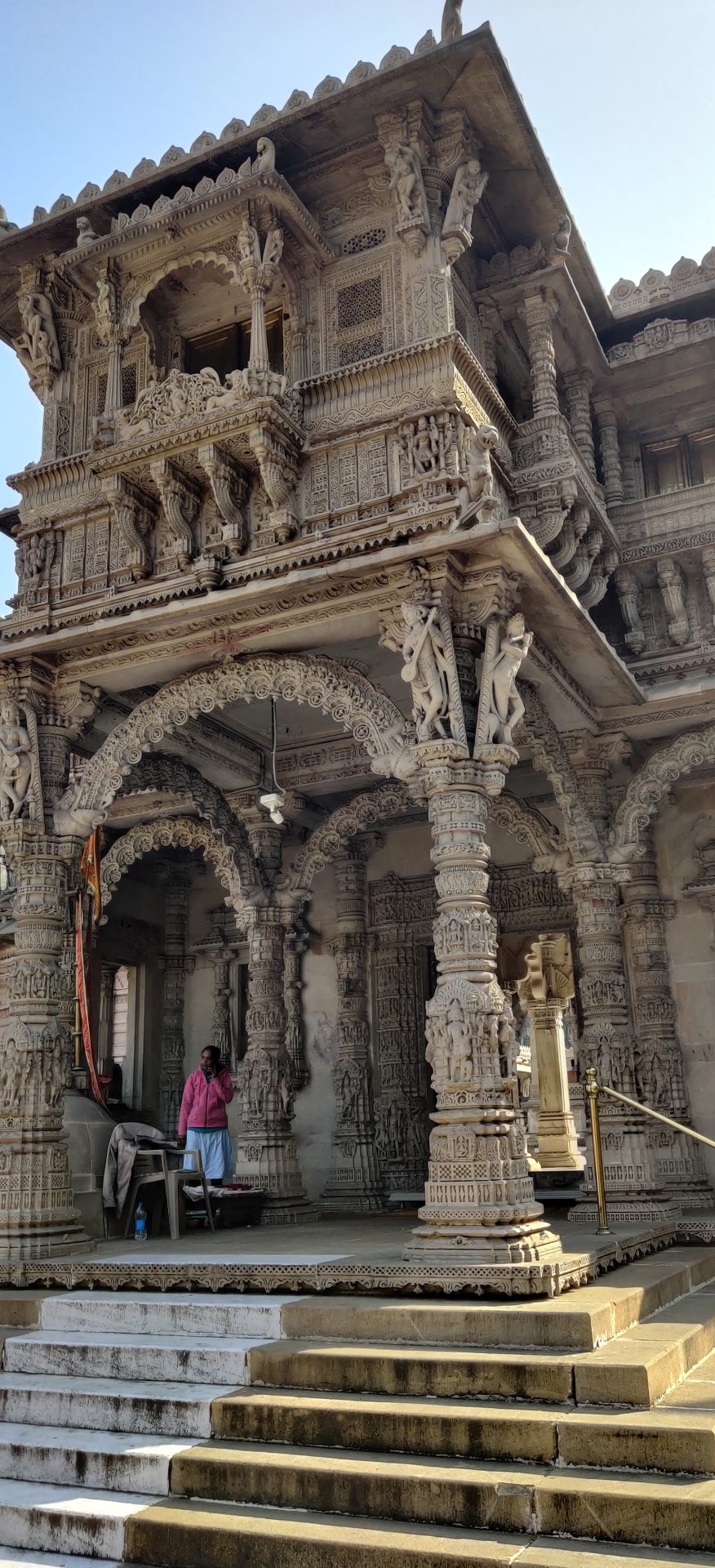 The temple is a nice architectural blend of the Maru-Gurjara temple style and the elements of the current haveli style of buildings.