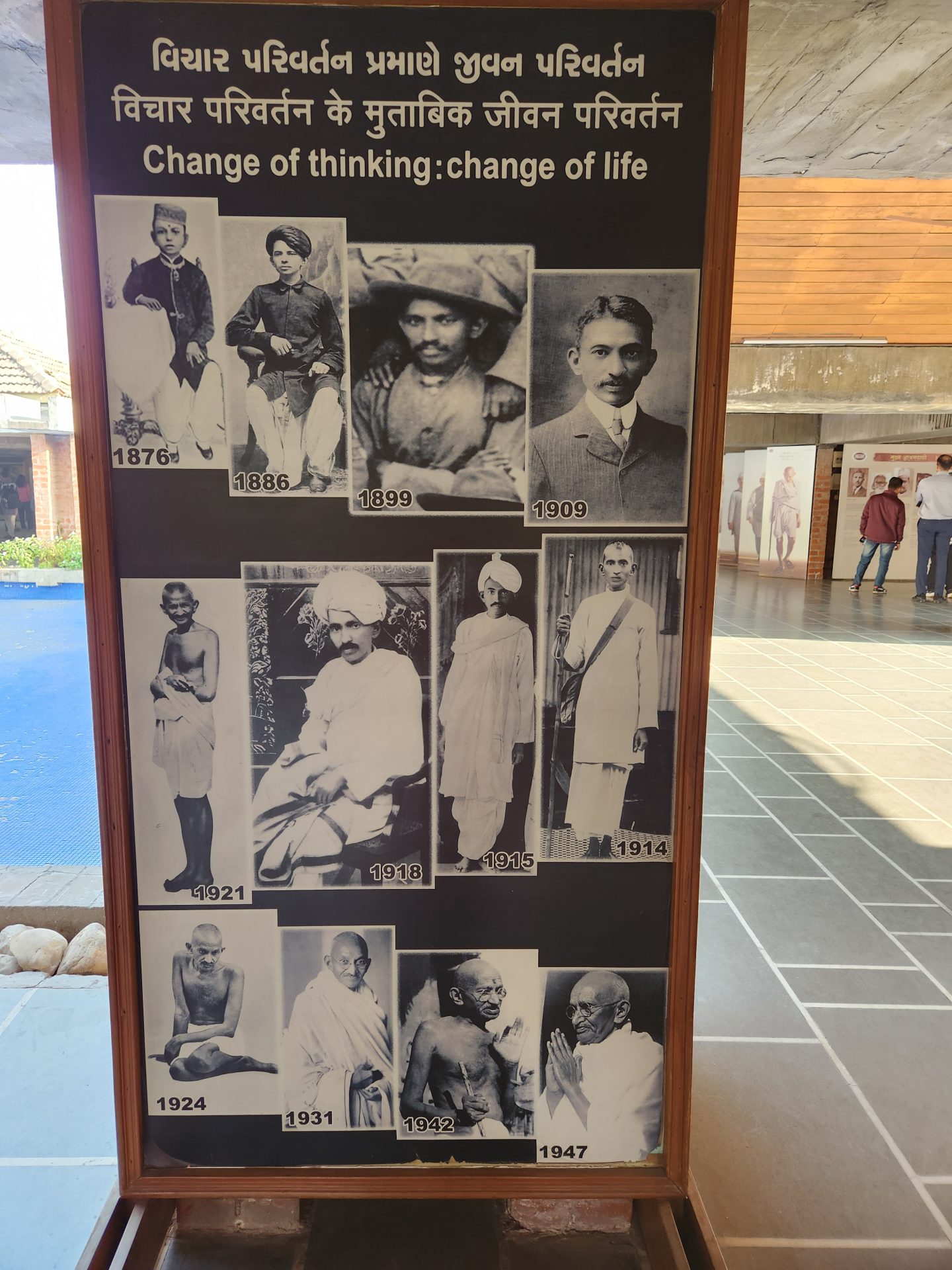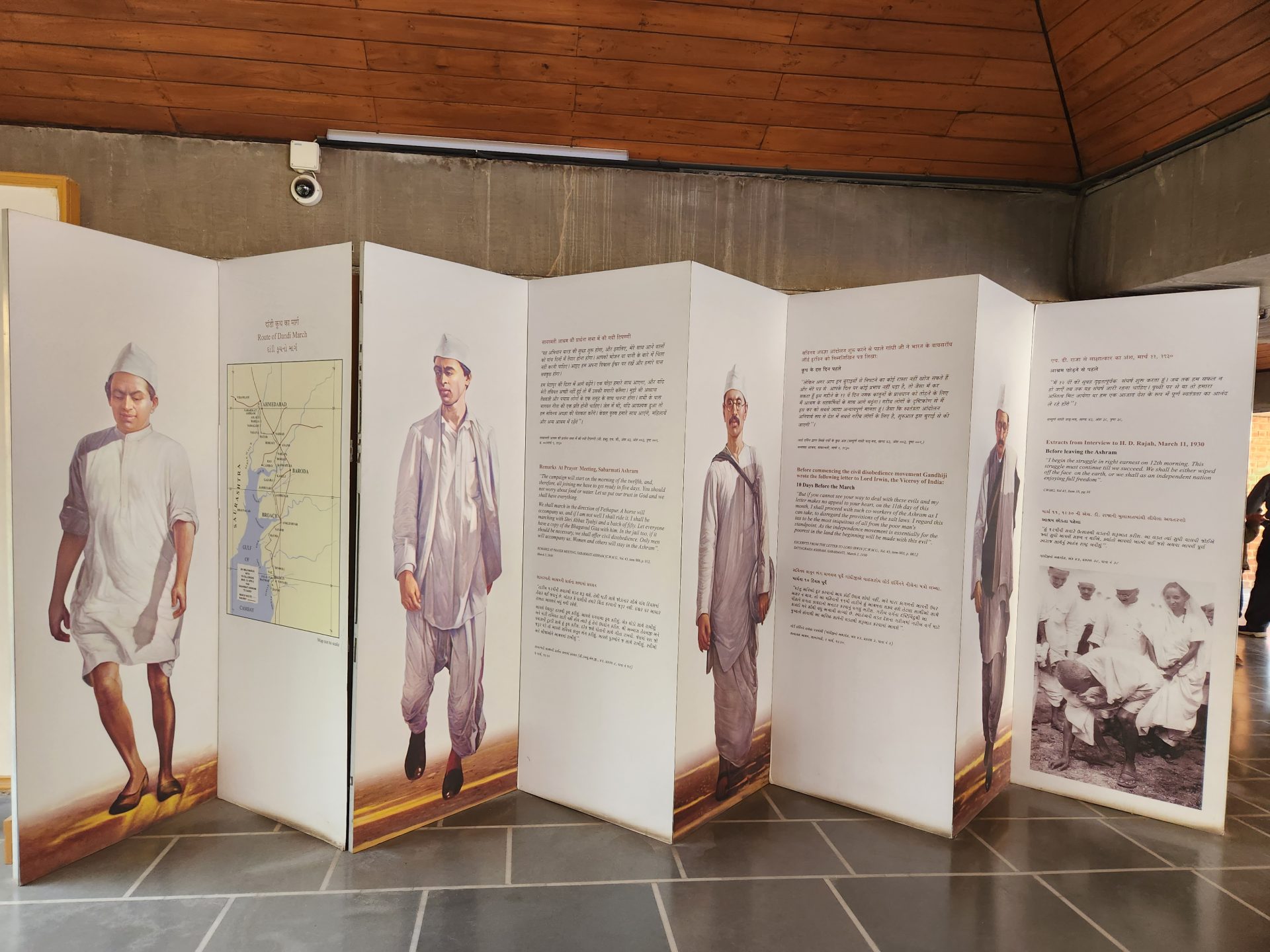 A separate hall opens out to an exhibition where apart from the various letters written by Mahatma to different personalities are there, there are quite a few paintings and photographs highlighting various events.