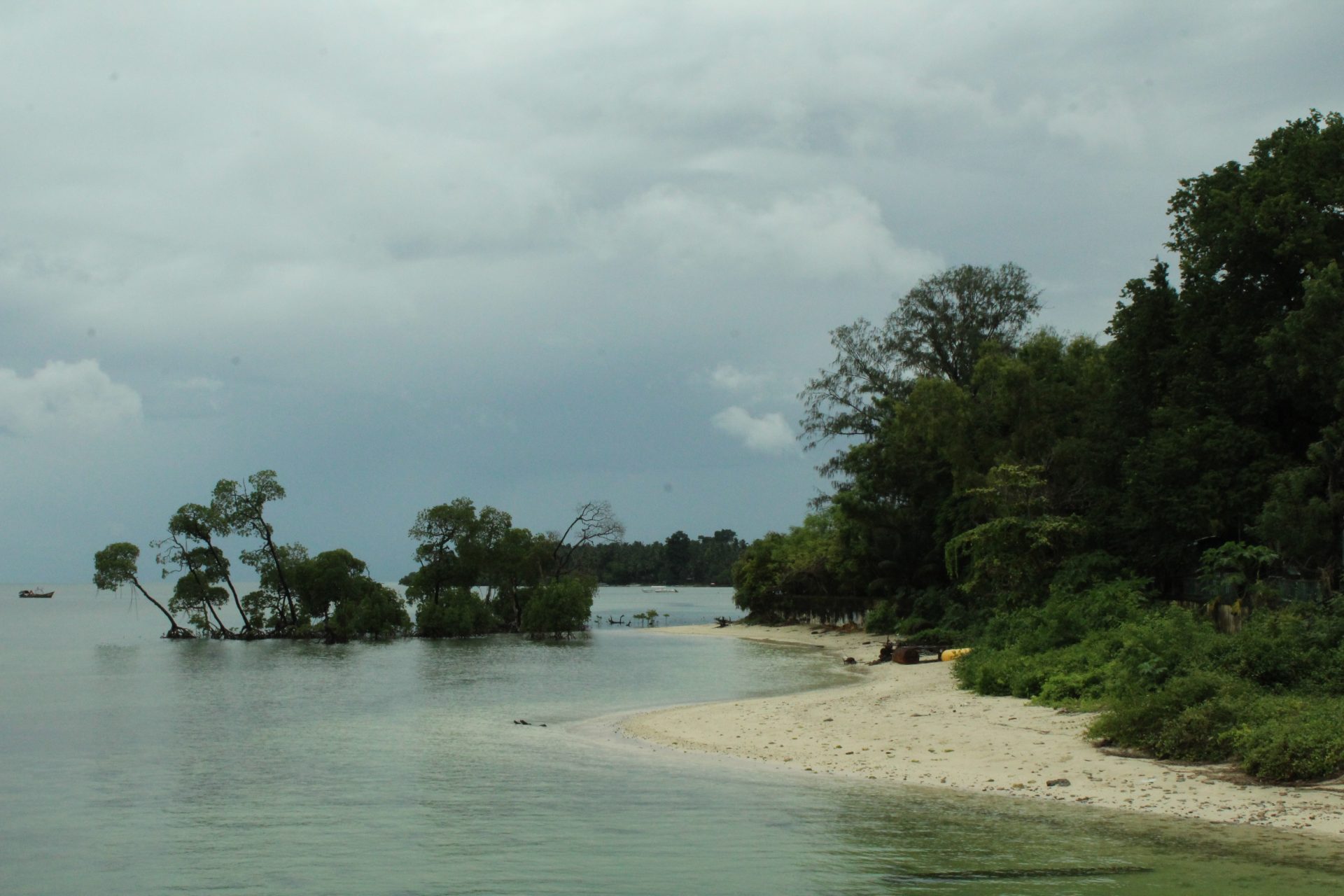 The Chidiya Tapu beach is located around 28 kms from the main town and is at the Southern most tip of South Andaman Island. Known to very popular amongst tourists for the sunset views, bird watching and the panoramic scenery around. The rains proved to be a dampener as the skies were overcast and cloudy and we missed the opportunity to get a good capture of the sunset. The rich mangrove forests around are home to a wide variety of birds.