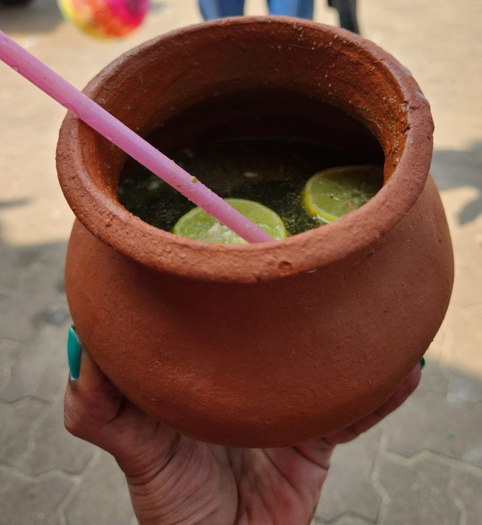 We were back to the mainland by around 1 PM and while the ladies got busy shopping for handicrafts, dresses and fridge magnets, I went around the small park and Sea Walkway. The coolants served in the Matkas (Earthern Pots) were awesome and especially the Masala Lime Soda and Tempered Buttermilk garnished with Chillies and Ginger.