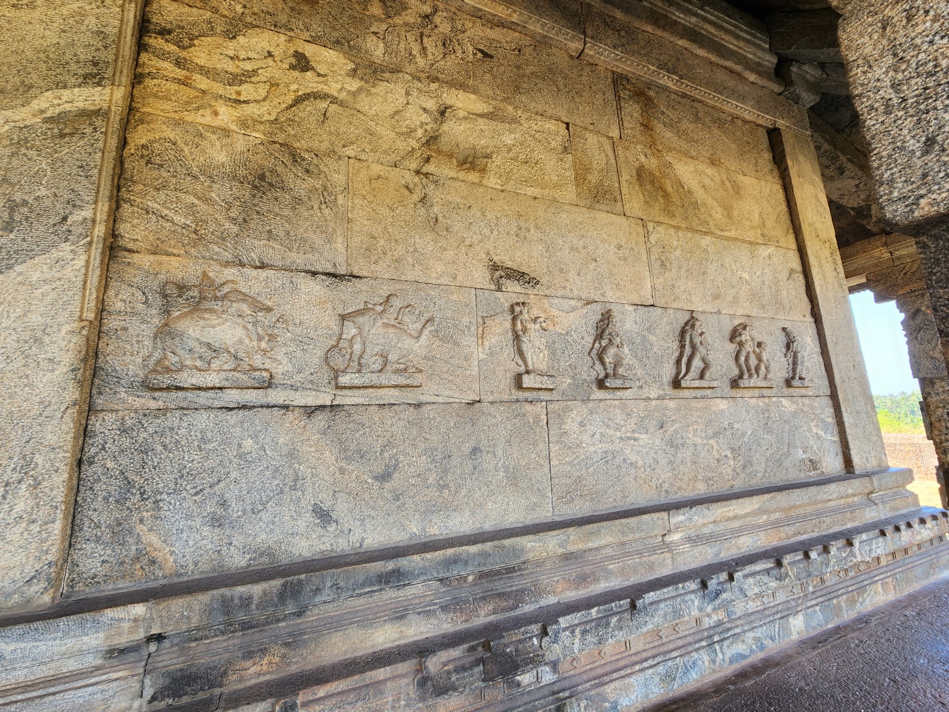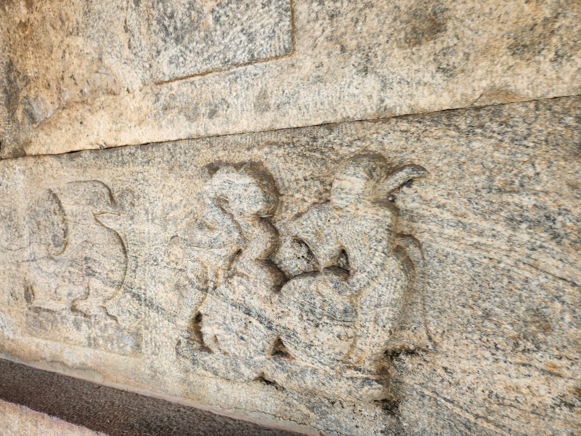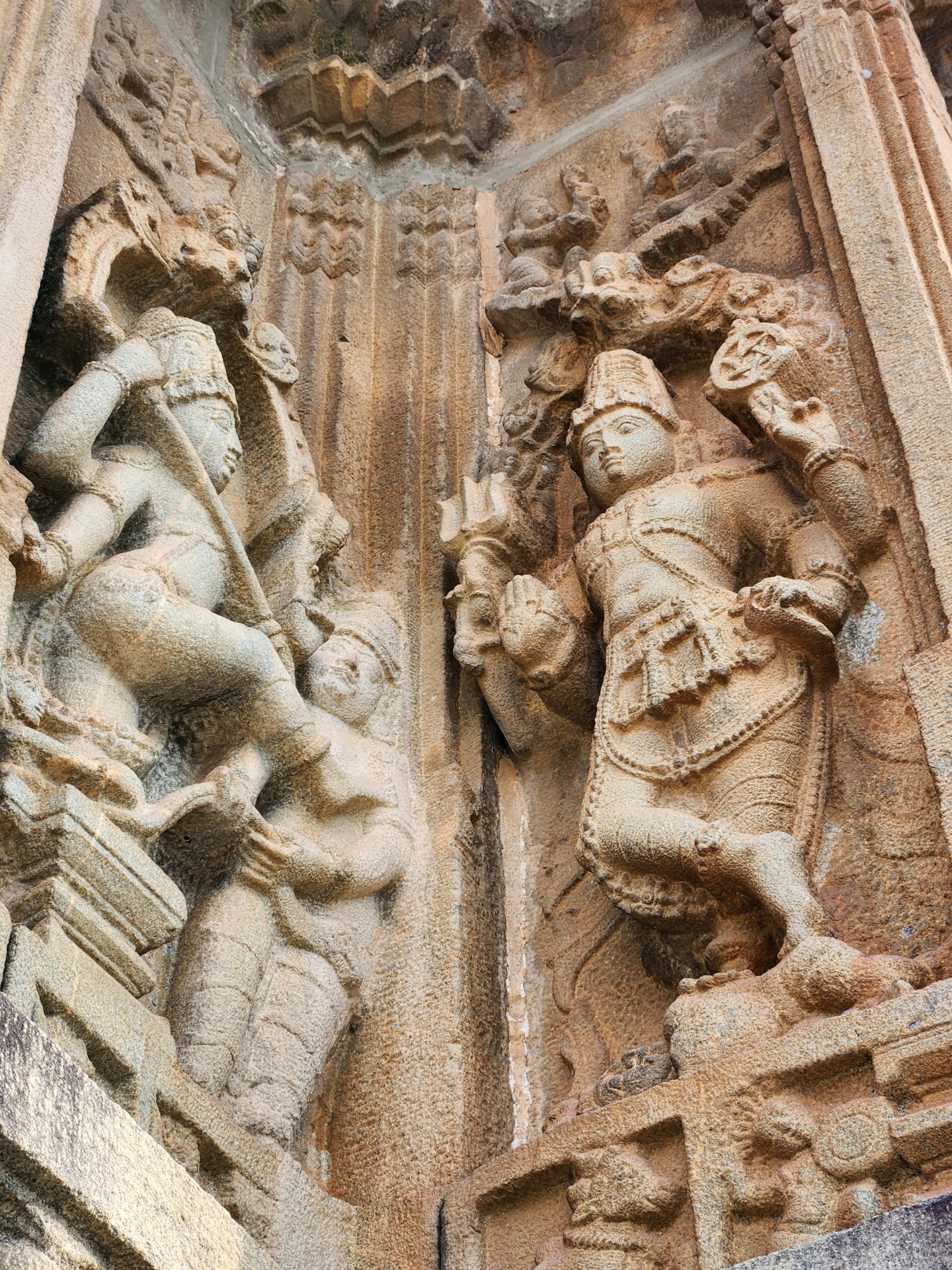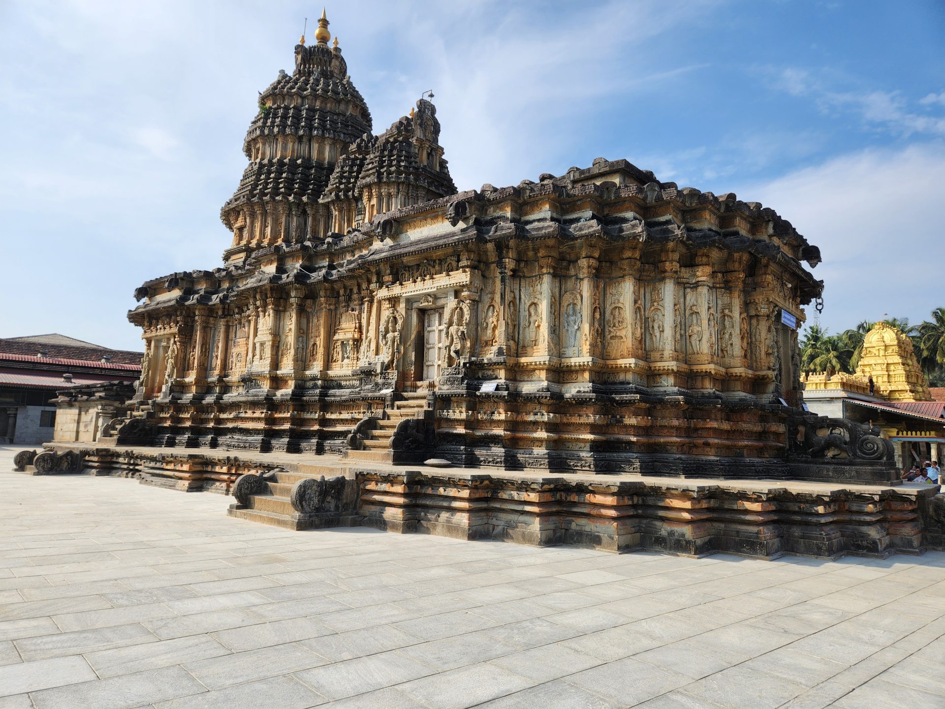 While the Gateway tower and outer walls use an almost circular plan, the inner chambers and sanctum are built square. Built on a high plinth like most Hoysala temples, the basement is adorned with ballustrades and sculpted animals with elephant-lion hybrids flanking the steps.