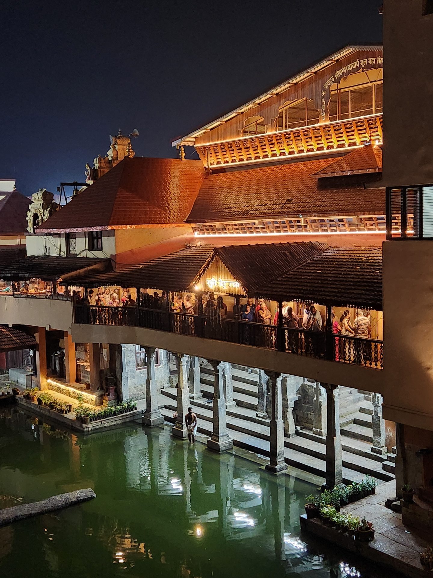 We spent sometime walking over from one end to the other on a Hanging Bridge over the Tunga river. Post some coffee at a restaurant nearby we entered the temple complex by around 3.15 PM so that we were able to explore the outer parts of the temple before the main temple opened at 16.00 hours.
