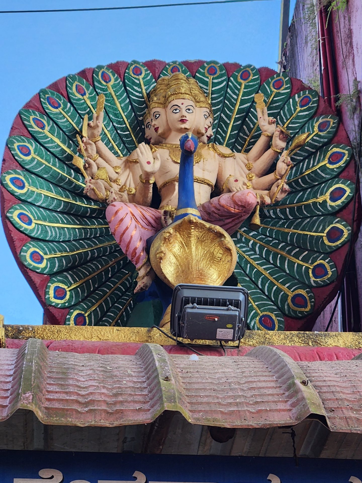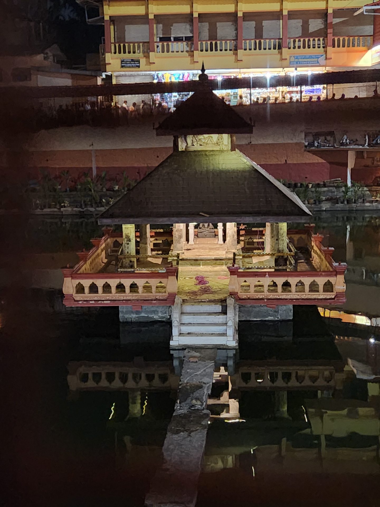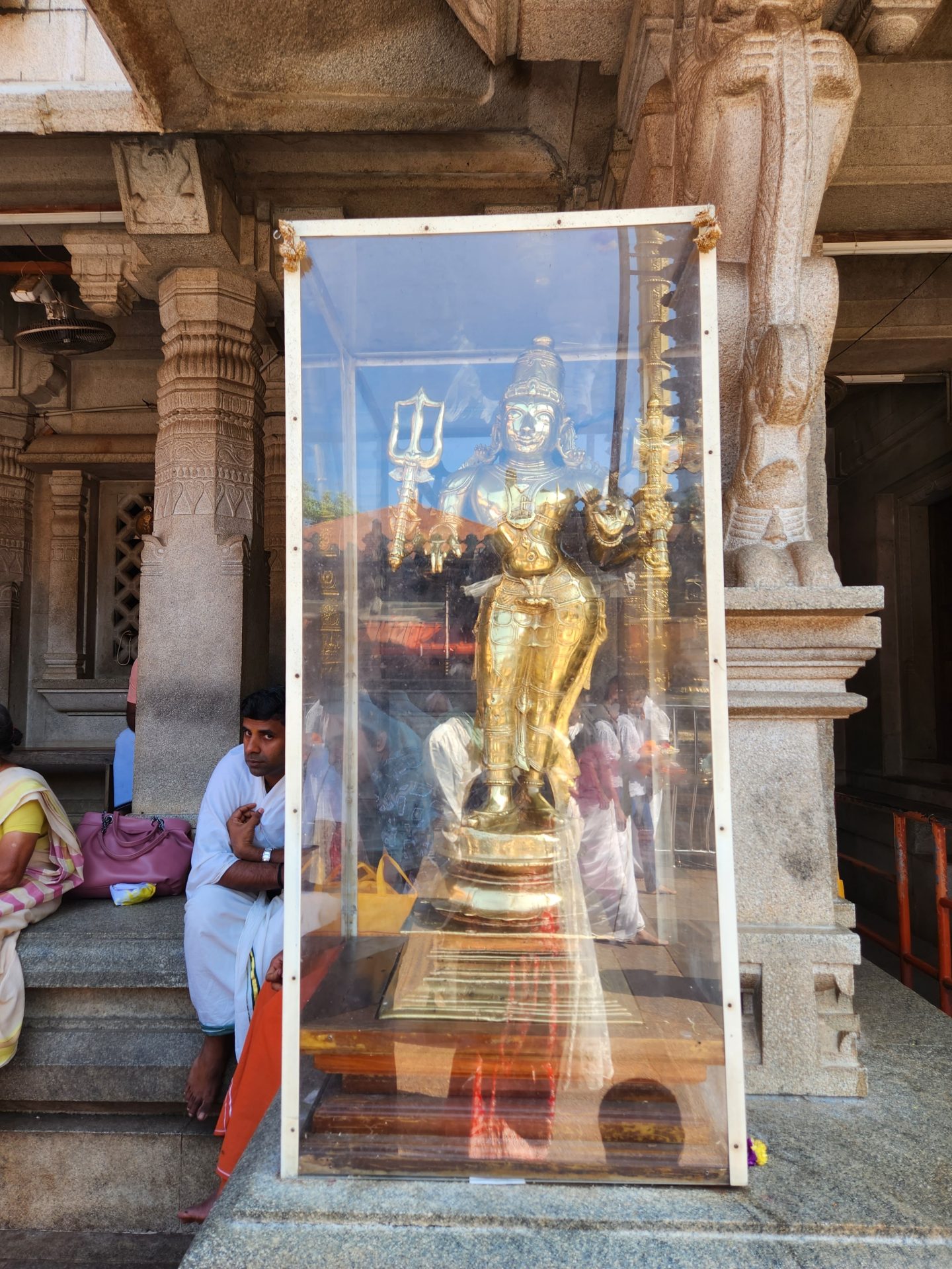 Save for the sanctum sanctorum, the temple otherwise looks completely modernized. The main deity is Sri Mridesa Linga, also known as Murudeshwara. The Linga here is believed to be a piece of the original Atma Linga and is placed 2 feet below ground level. We were a bit unlucky not to see the statue in its full glow as there was some renovation work going on and a scaffolding was in place.