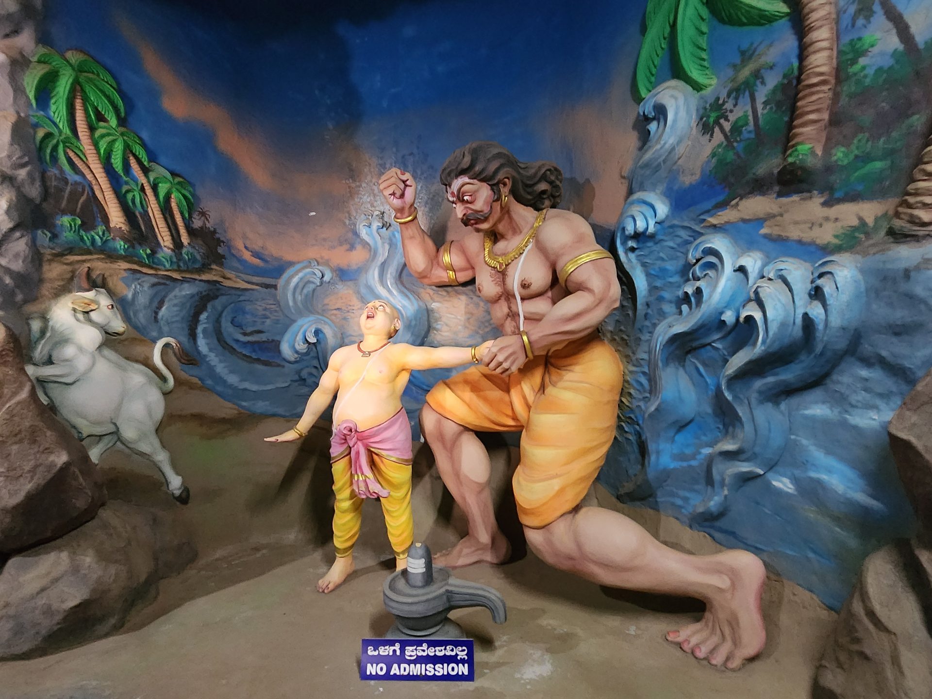 Right near the basement of the statue, there is a Bhukailasa Cave museum filled with statues and three dimensional models and scenes also known as Dioramas, depicting different stories of mythology.