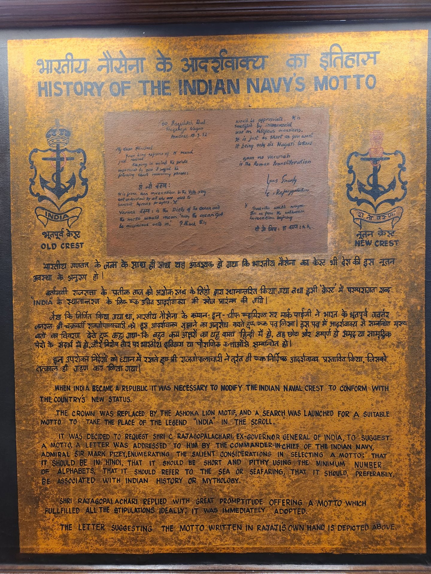 A separate  section outside traces the achievements of the Indian Navy post independence and the subsequent wars with neighbouring countries.Â