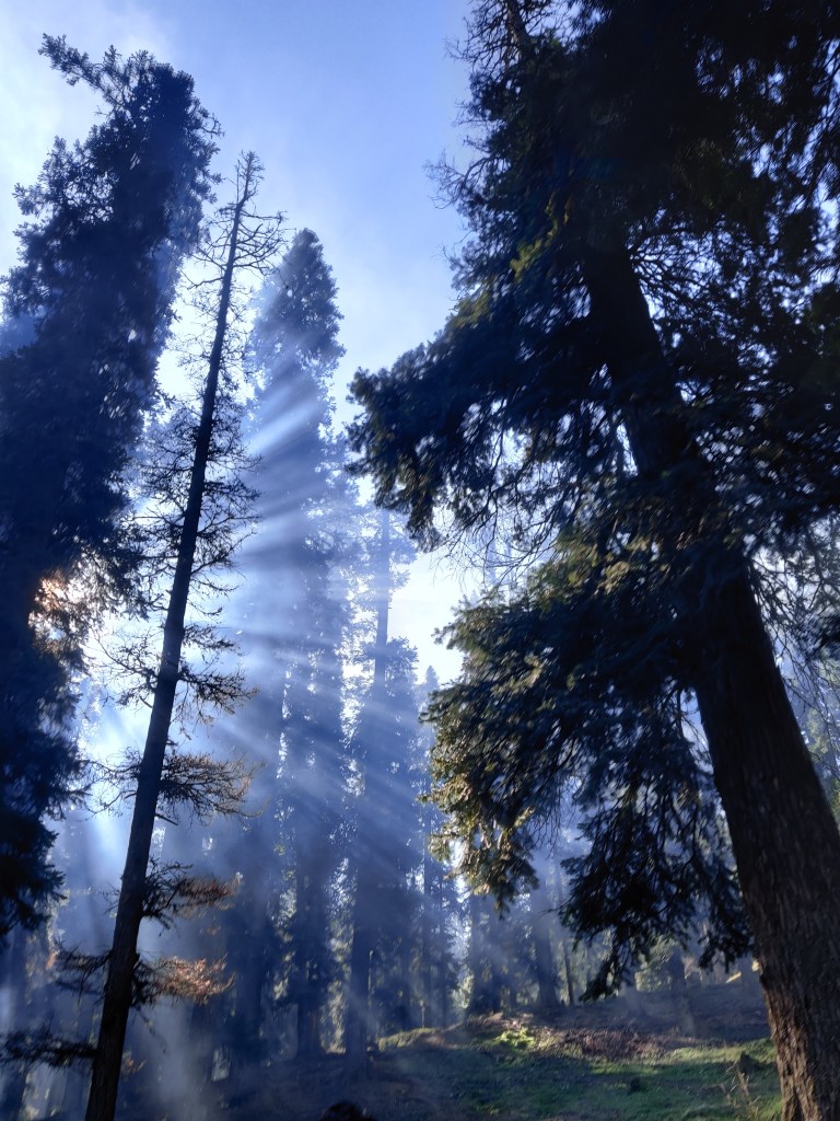 The first rays of the sun shining through the tall Conifer trees made for some beautiful clicks and after around 30 minutes we reached the drop point near the gate.Ā