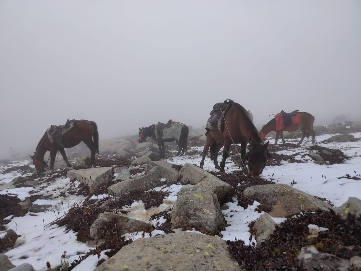 Considering the recent rains and change in climate, we were advised by our driver to avoid going toĀ Zozila PassĀ coz roads could be slippery and hence we finally decided to hire ponies and visit theĀ Thajiwas Glacier.