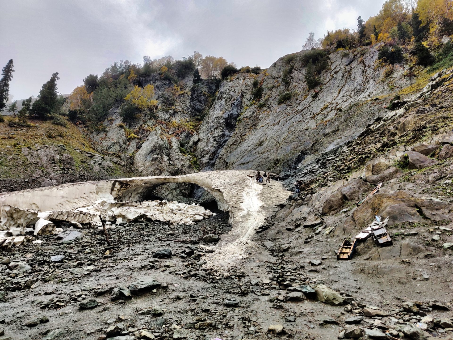 From the base of the glacier where the ponies dropped us, we had to navigate an arduous climb of 15-20 minutes to reach the point where there were activities abound for sledging etc. The climb down was treacherous with lot of loose rocks which tended to slip away because of the overnight rains. Once we reached the base of the glacier, helped ourselves to some piping hot tea and noodles before hitting the saddle for our return way back.