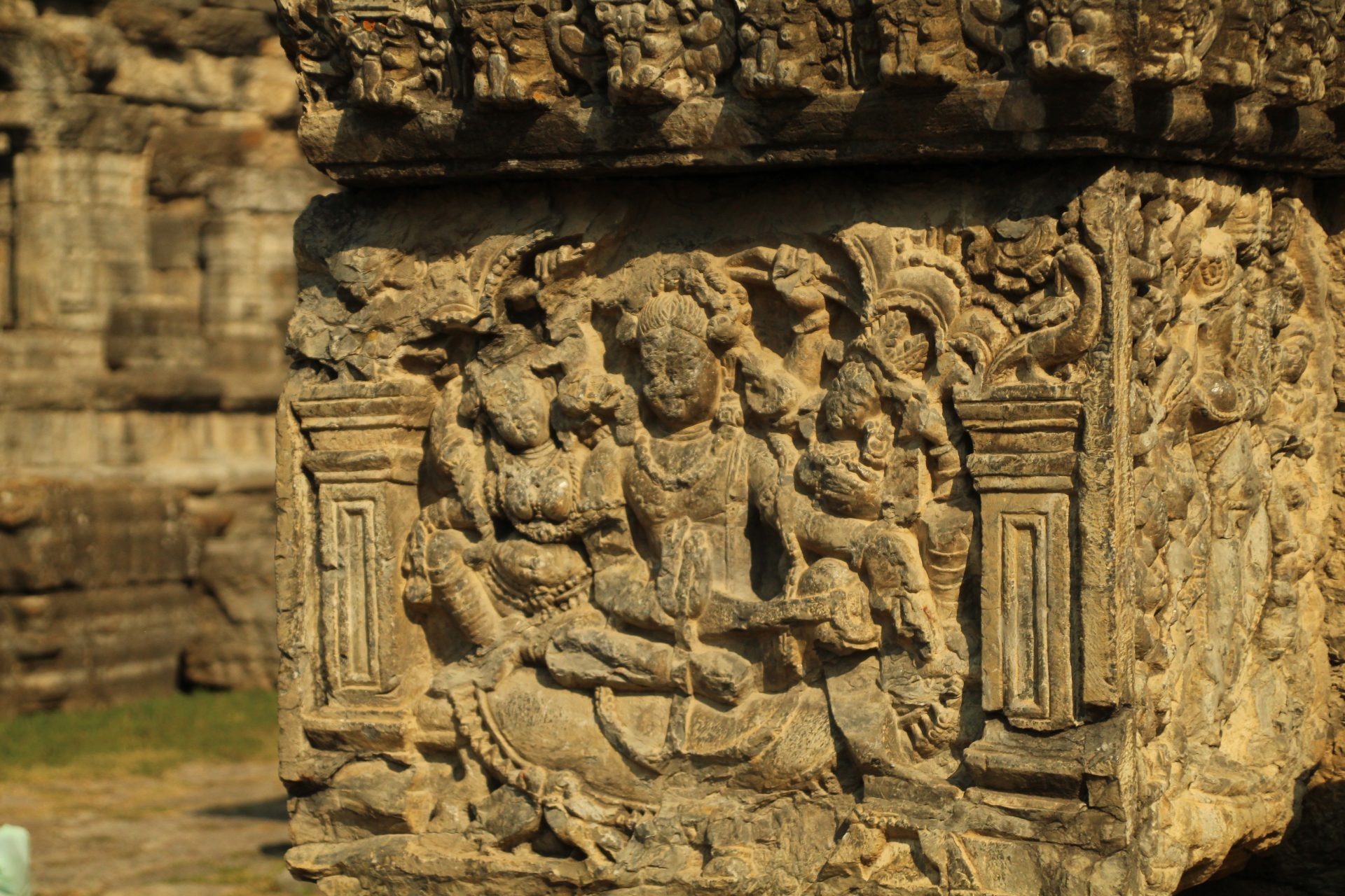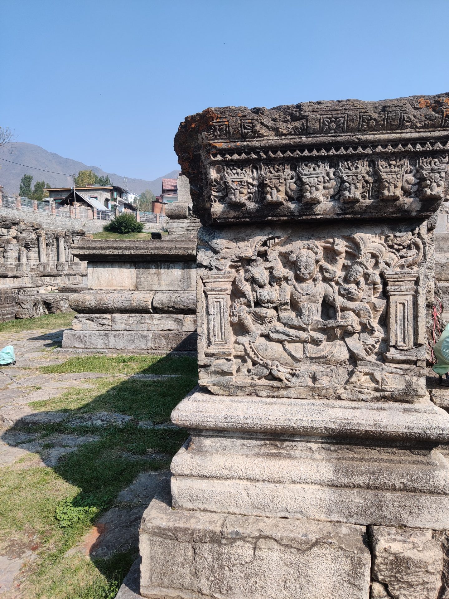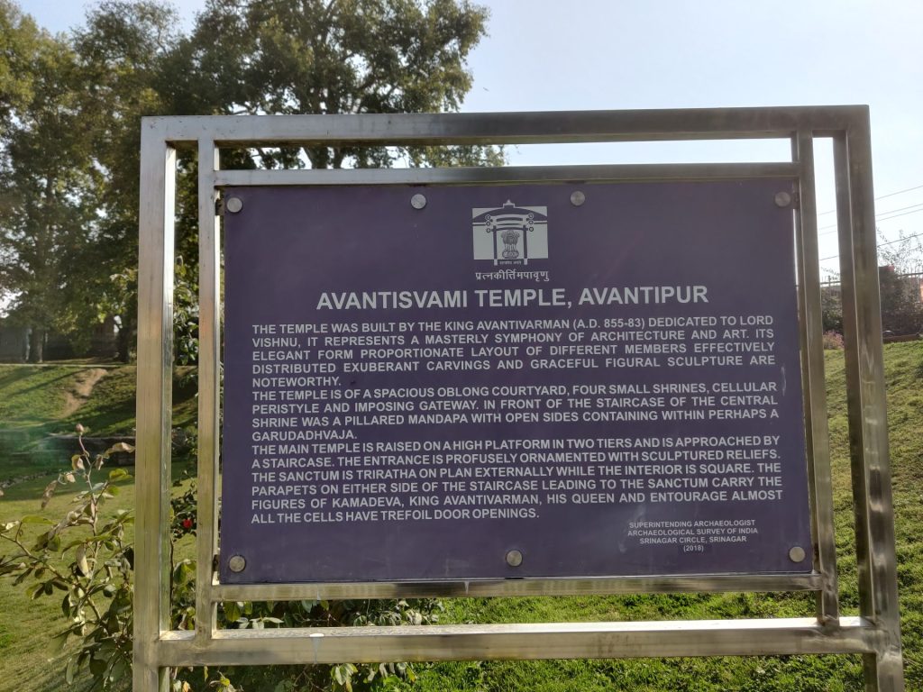 We then started our drive towards the Awantipura Ruins and reached the temple around 2.30 PM. This temple is dedicated to Lord Vishnu and was built by King Avantivarman who served between 855 to 883 AD. Though in ruins, one still gets to view some exquisite carvings on stone built over a spacious rectangular courtyard with a flight of stairs leading to where probably the shrines would have stood.