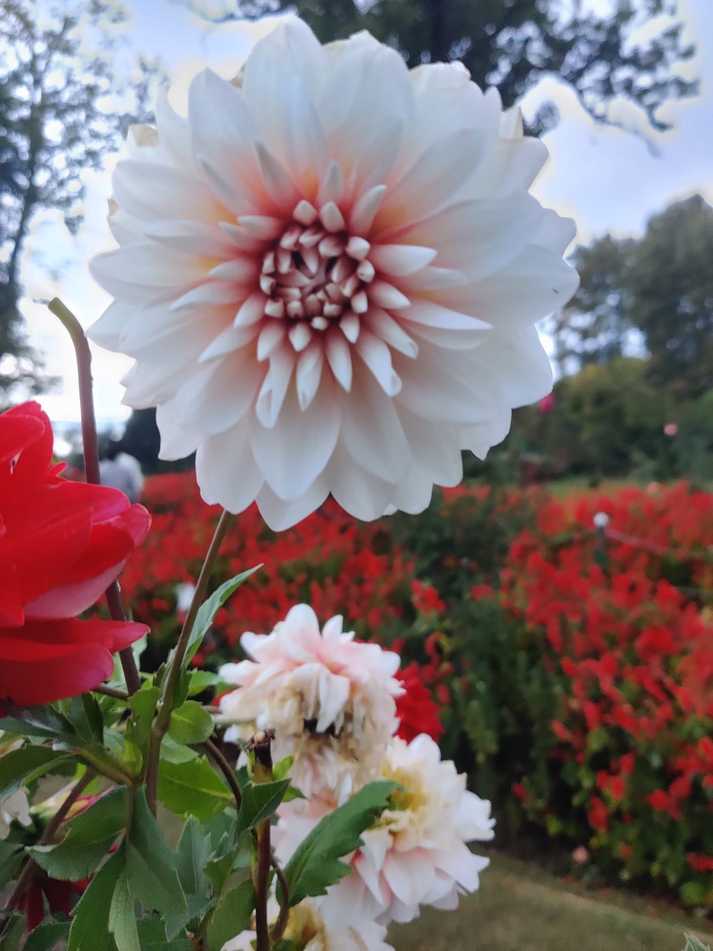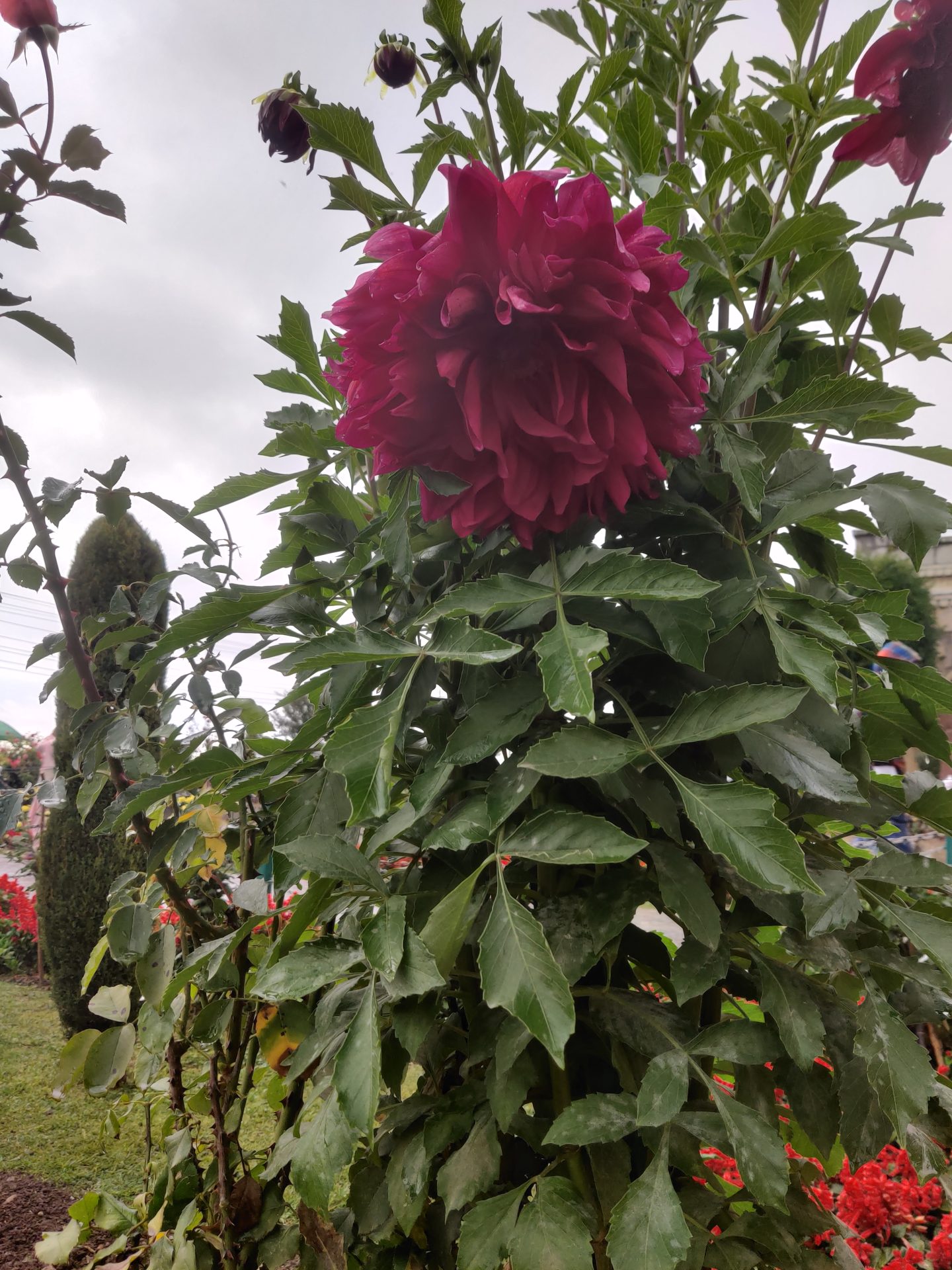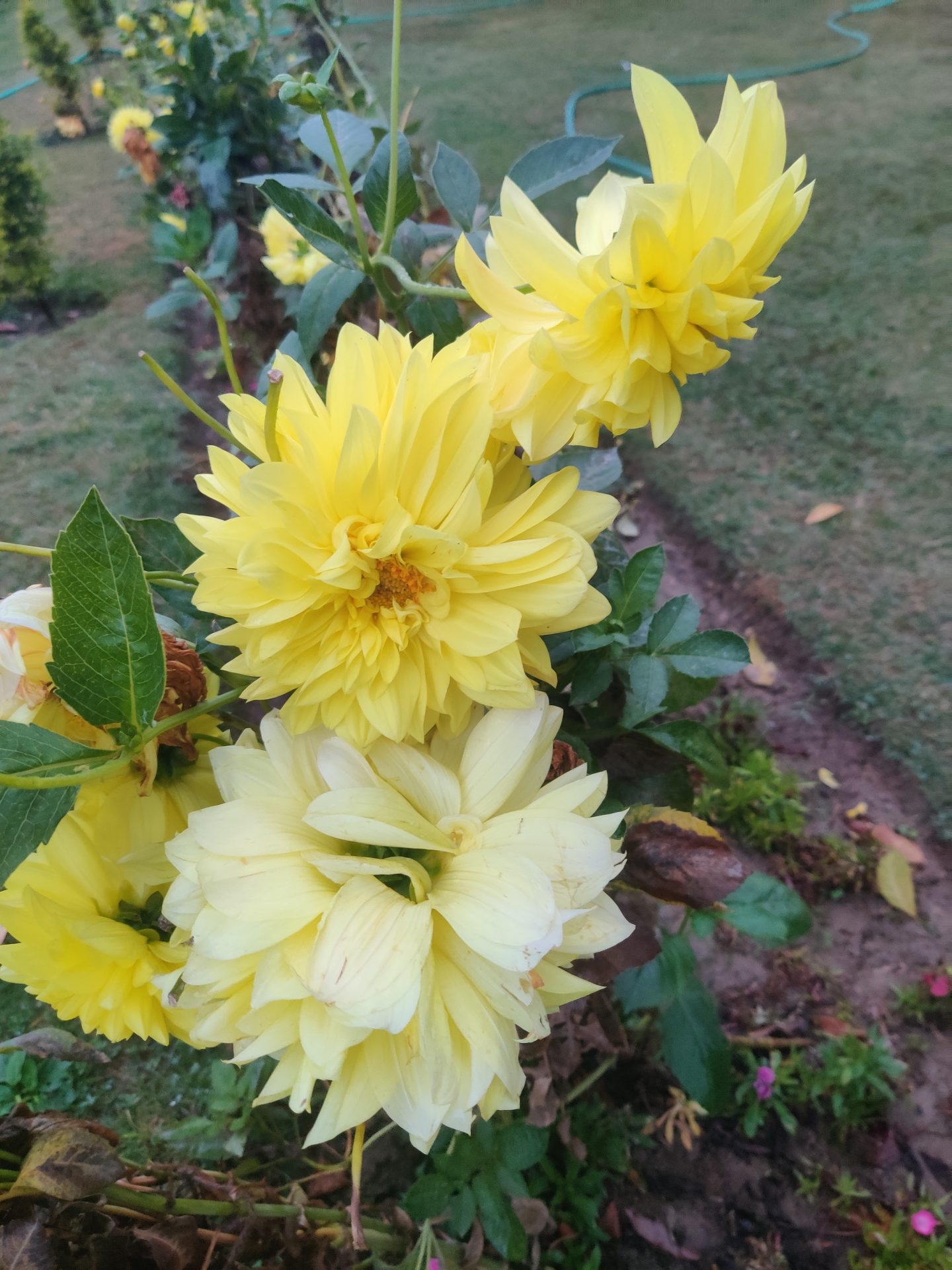 There was a small fee of Rs.20/- per head levied forĀ entering the Gardens. Starting from the lake side, the gardens roll up to an artificial faƧade closer to the hill end through a broad cascade of terraces.Ā Built in 1633 by Emperor Jahangirās brother-in-law, this garden has 12 terraces representative of the Zodiac Signs, rolling up to the mountain end and adorned with Cypress and Chinar trees throughout.Ā We spent around an hour and a half walking around the beautiful lush green gardens admiring the amazing collection of Dahlias in so many vibrant colors, the lovely roses and so many other varieties of daintily coloured flowers.