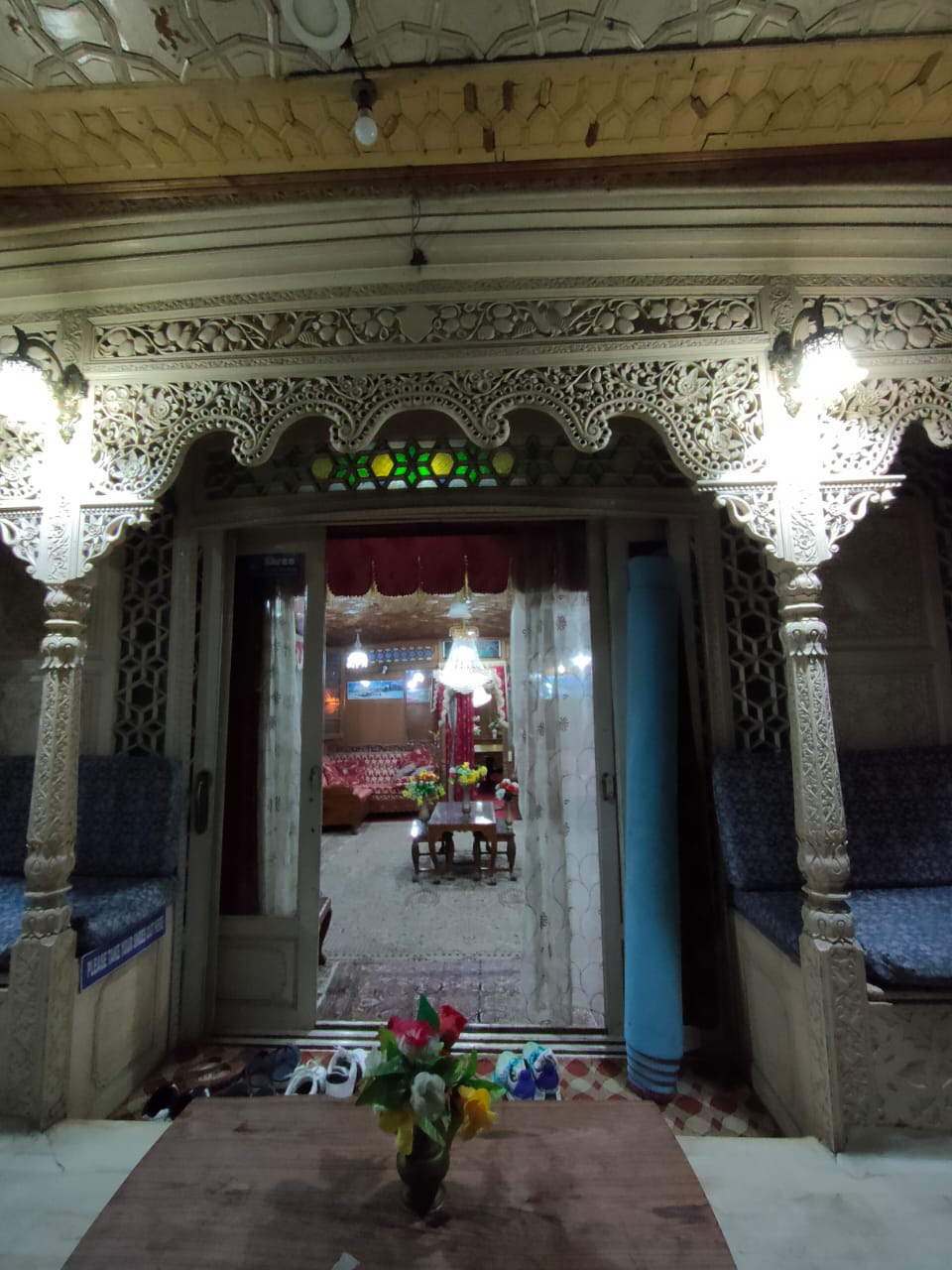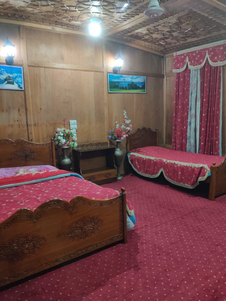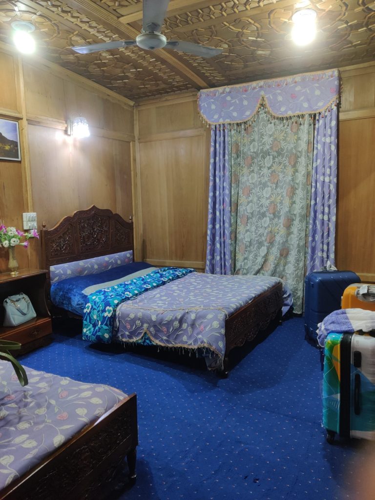 A 15 minute ride across the lake done, we were warmly welcomed to the Aziz Palace Houseboats and ushered into our rooms. The entire place was well done up with carpets with a nice sit out where people were around to display their wares like Pashmina Shawls, works of embroidery, artefacts etc.Ā Ā