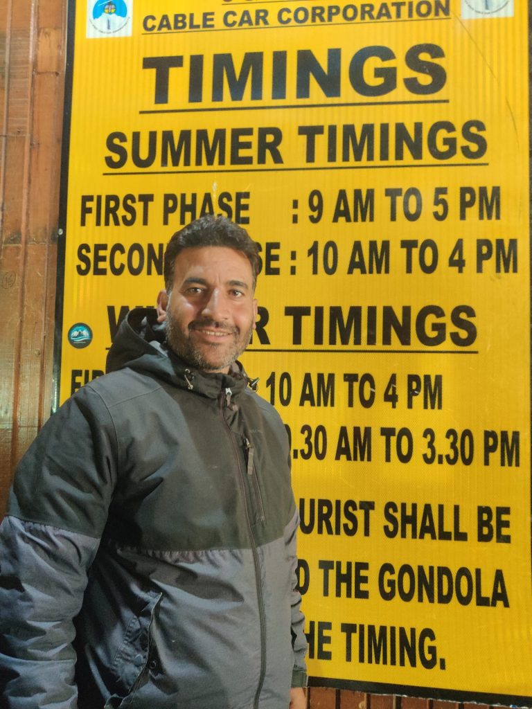 Yaseen bhai, our driver had made arrangements with a local Tourism Department recognized guide who was to help us with our ticketing for the Gondola ride which takes tourists through a ropeway to the snow clad Apharhwat Peak, located at a height of around 14,000 feet.