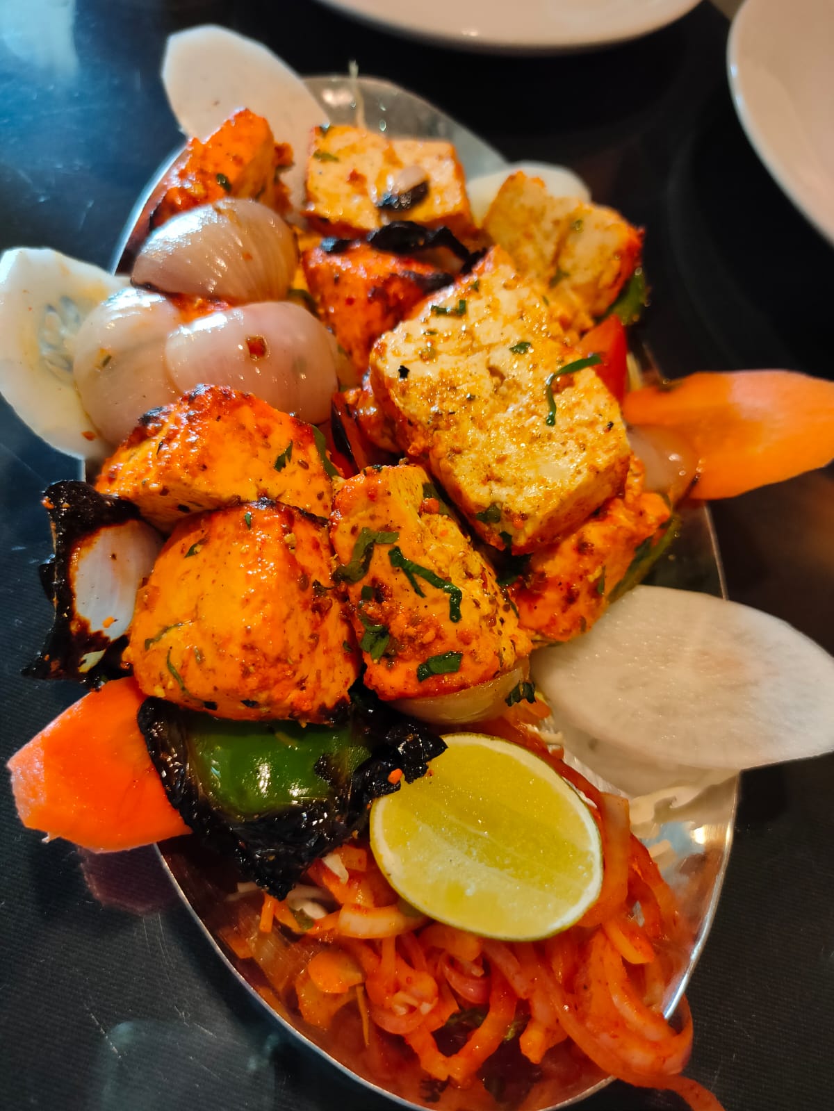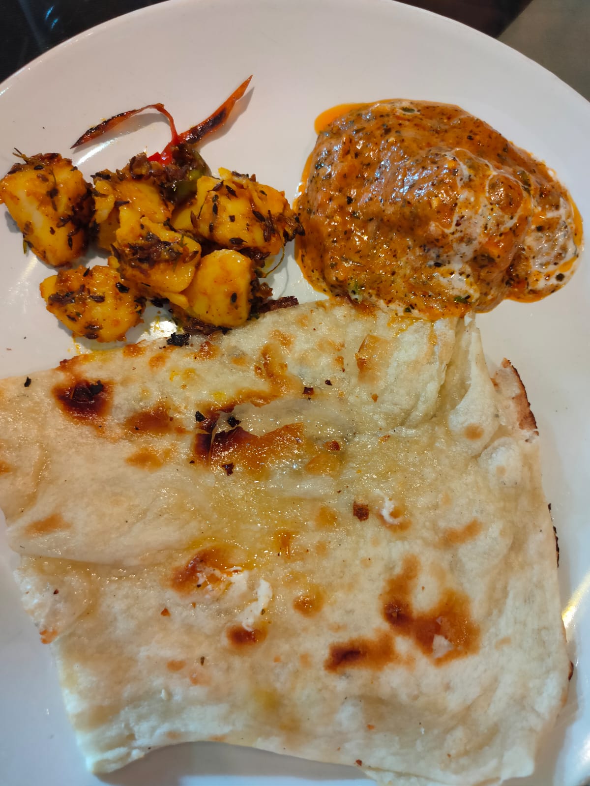 We stopped by at Stream, a lovely multi-cuisine restaurant enroute towards the city forĀ a piping hot lunch of Rotis, Dum Aloo (which owes its origins to Kashmir), DalĀ Makhani and Paneer and some yummilicious Walnut Tart.