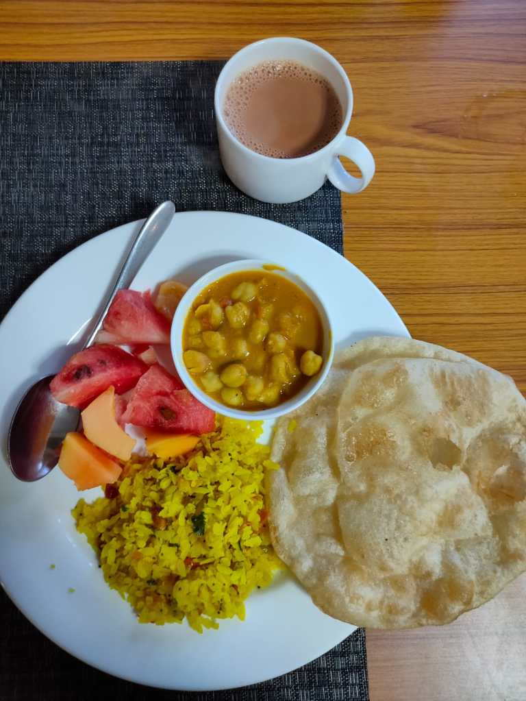 The rains began to increase in intensity and so did the cold and post some steaming hot cups of the local Kahwa chai (a green tea variant served with chopped almonds and walnuts), we finished our dinner and headed back to our rooms for the night.
