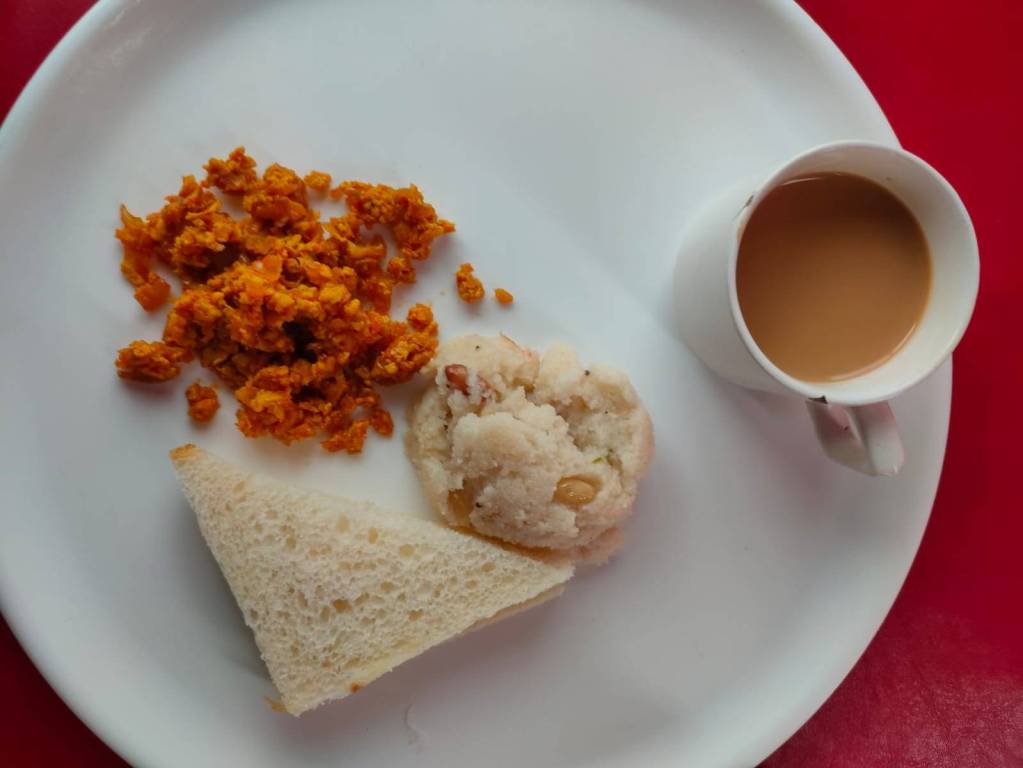 We were up and ready by around 8.30 in the morningĀ for aĀ little bit more of sightseeing at Srinagar. Breakfast was served in a well laid out area attached to the Houseboat.Ā We had some very well made Upma (thick porridge made out of semolina and water and garnished with onion and occasionally veggies and seasoned with mustard), Pooris with Chole along with Sandwiches, Parathas and Scrambled eggs for breakfast.